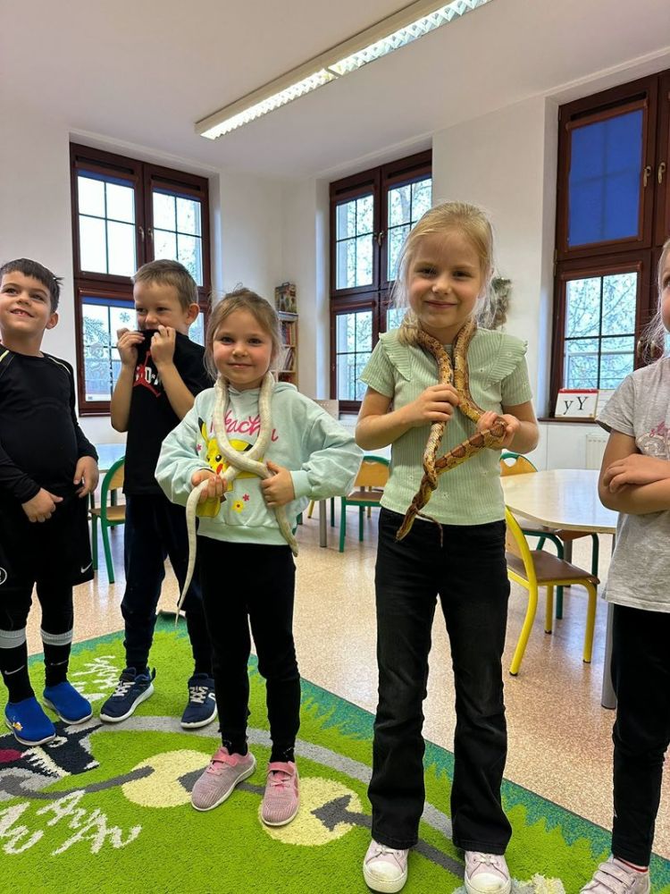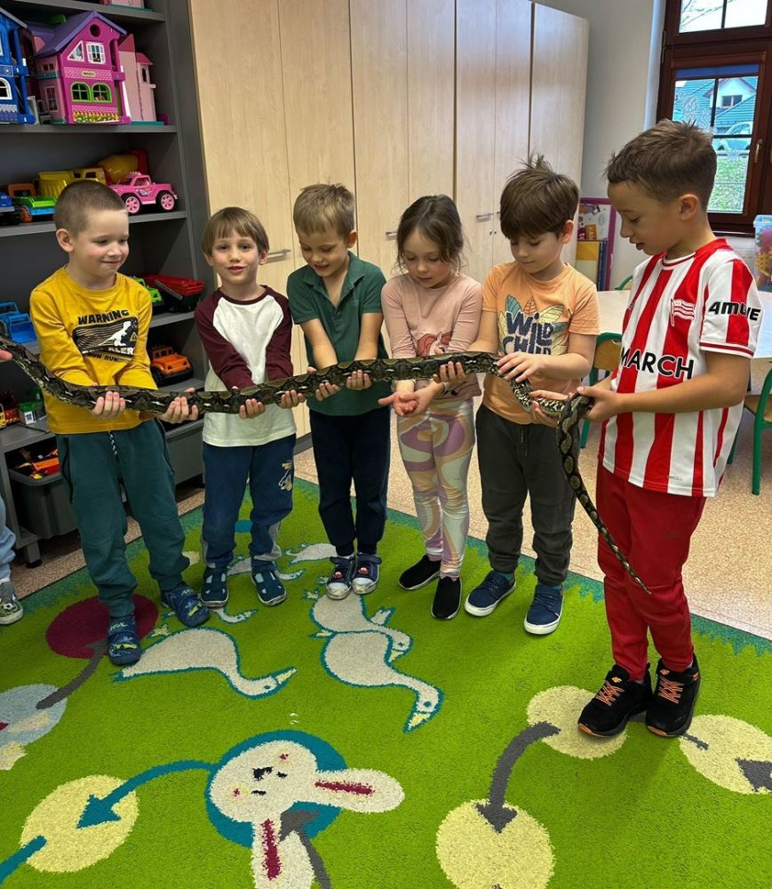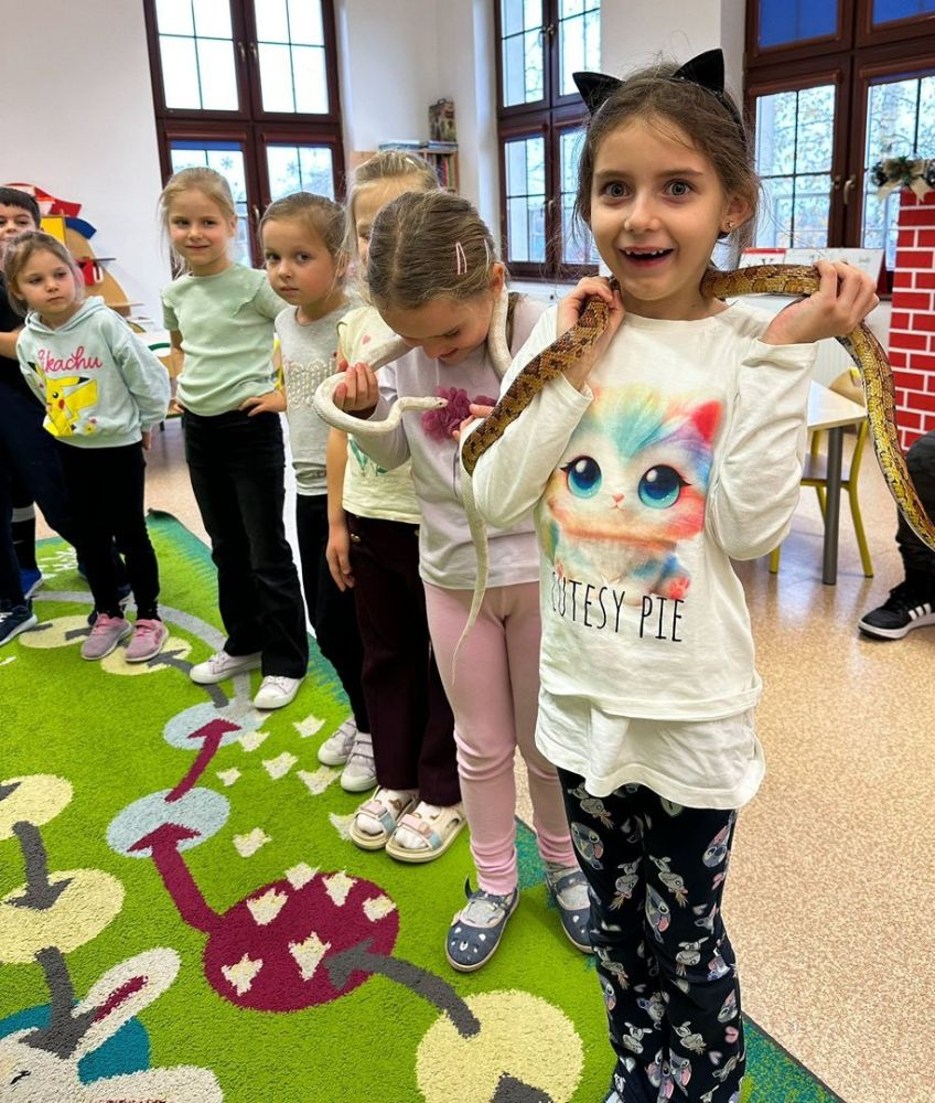 Nasi najmłodsi mieli kolejną okazję, by odkrywać fascynujący świat przyrody. Tym razem w oddziałach przedszkolnych odbył się wyjątkowy pokaz węży, podczas którego dzieci mogły z bliska zobaczyć te niezwykłe zwierzęta, poznać ich zachowania, różne gatunki oraz dowiedzieć się, jaką rolę pełnią w środowisku.