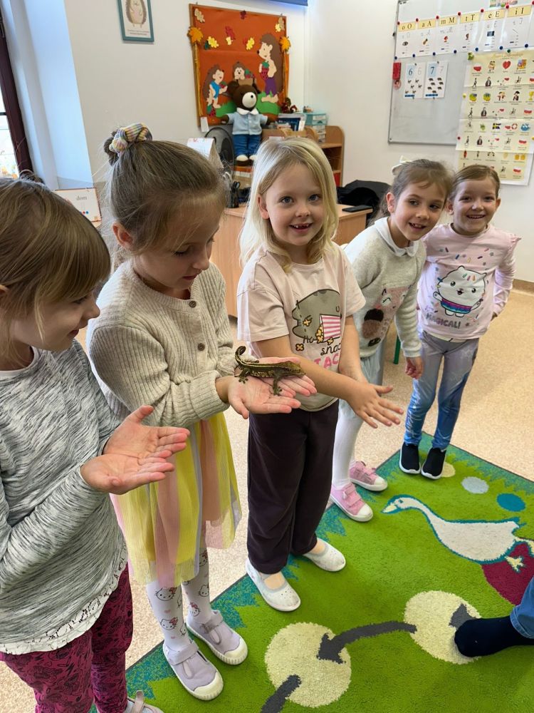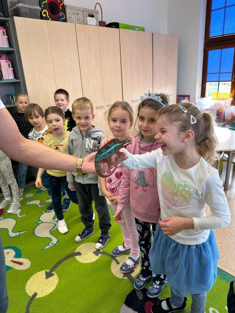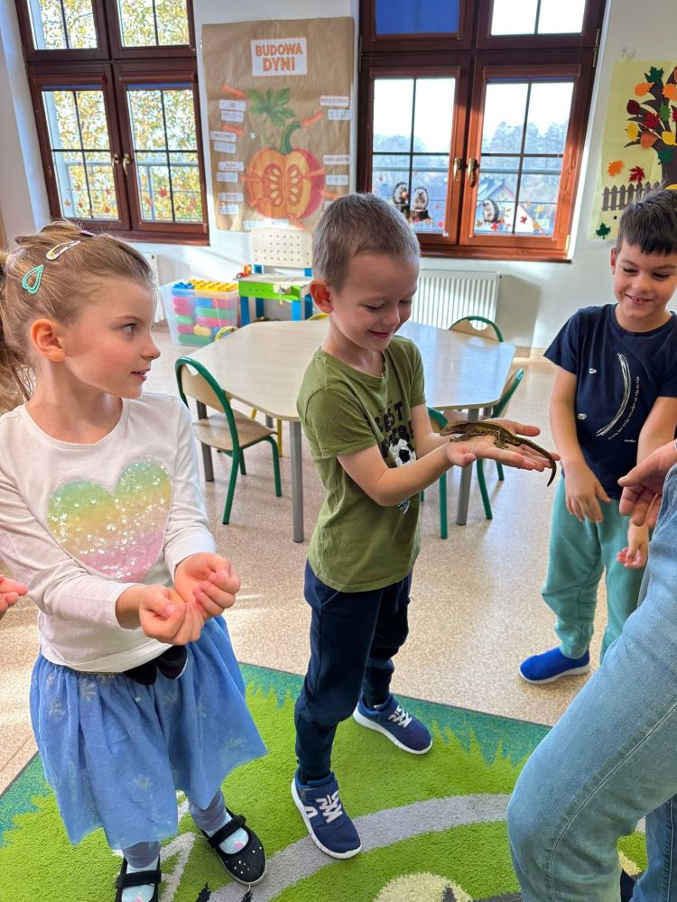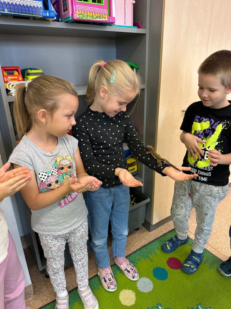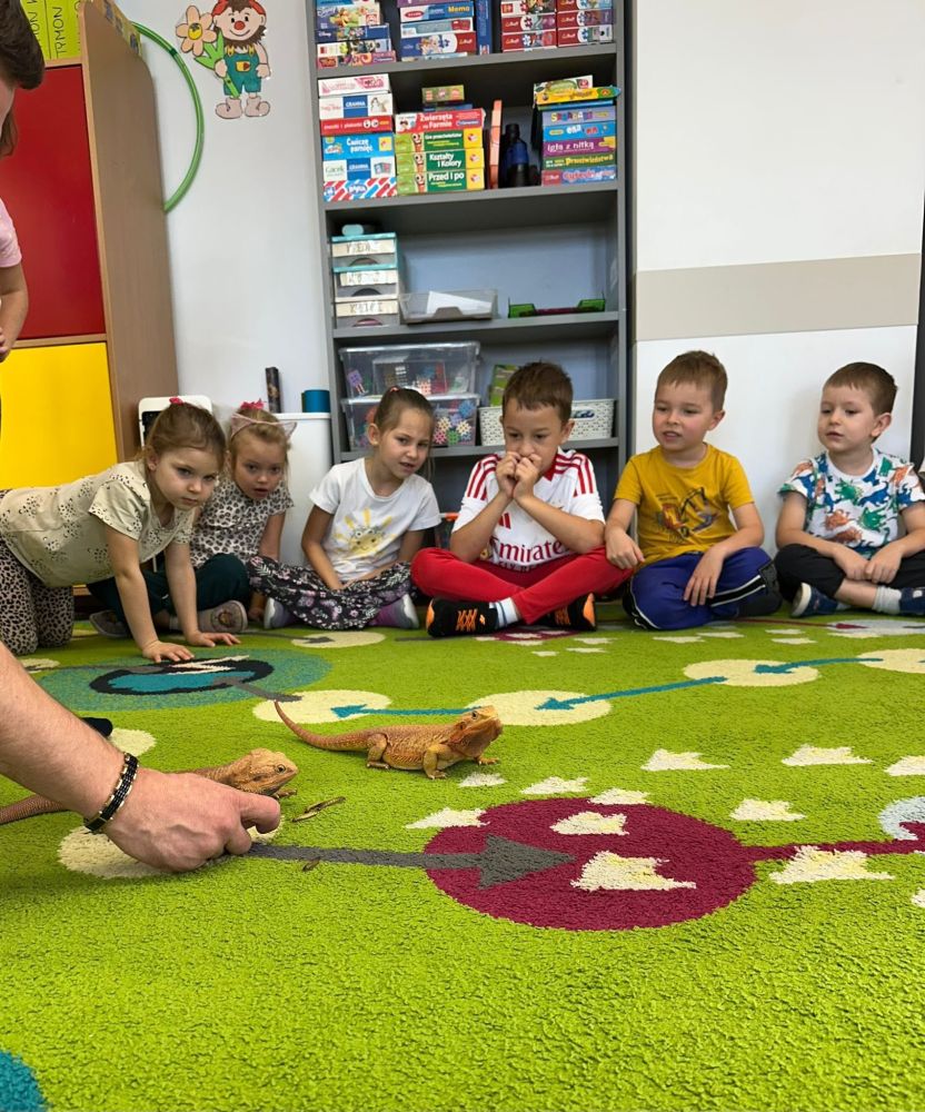 W oddziałach przedszkolnych w Modlnicy odbyła się kolejna lekcja żywej przyrody, podczas której dzieci miały okazję poznać fascynujący świat jaszczurek. Pokazy wzbudziły ogromne zainteresowanie, a bezpośredni kontakt ze zwierzętami wywołał wiele entuzjazmu i radości. To wyjątkowe doświadczenie z pewnością pozostanie z nami na długo i wzbogaci wiedzę najmłodszych o otaczającej nas naturze.