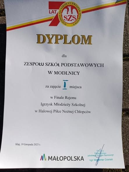 Z dumą informujemy, że reprezentacja piłkarzy z naszej szkoły zwyciężyła dzisiaj w Finale Rejonu Igrzysk Młodzieży Szkolnej w Halowej Piłce Nożnej Chłopców. Zawody odbyły się w Kłaju. Nasi zawodnicy pokonali silną reprezentację z Gdowa. Tym samym znaleźli się w gronie sześciu najlepszych drużyn w Małopolsce i już 28 listopada będą reprezentować szkołę w turnieju w Limanowej będącym kolejnym szczeblem zmagań. Serdecznie gratulujemy dziesięciu piłkarzom oraz nauczycielom wychowania fizycznego - szczególnie Krzysztofowi Szumcowi oraz Grzegorzowi Zajączkowskiemu.